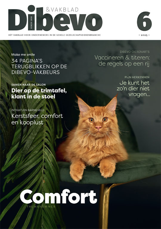 Dit nummer draait om comfort in al zijn vormen. Bijna de helft is gevuld met een terugblik op de Dibevo-Vakbeurs: stands, producten en dingen die je misschien nét gemist hebt. Daarnaast laten we zien hoe comfort eruitziet in de praktijk, zoals bij Pamppy in Amsterdam, waar hond en baasje samen in de watten worden gelegd: het dier op de trimtafel, de klant in de stoel.
